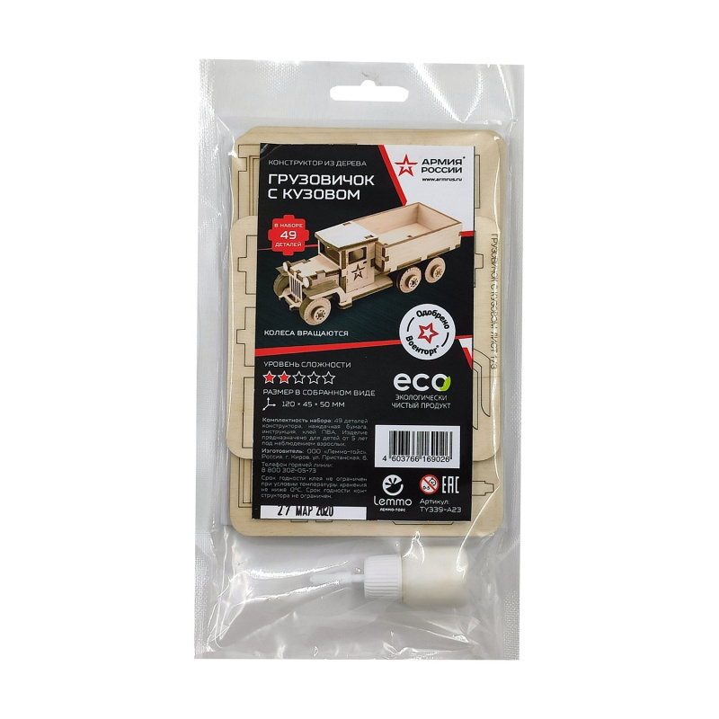 Набор Советский грузовичок с кузовом подходит для ребенка от 5 лет. У собранной модели вращаются колеса.